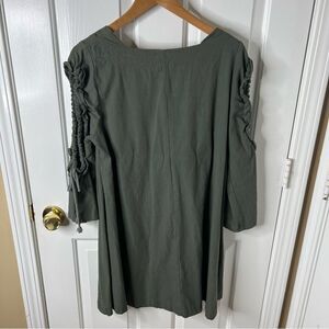 Easel Brand Anthropologie Dress Fall Boho Keyhole Sleeve Sage Olive Medium Linen.