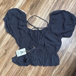 Easel Charcoal Textured Peplum Top NWT Size S, M, L