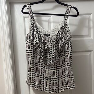 Chic chocolate blouse with layered ruffles. Eyelet details add charm. Ideal for casual elegance. Worn once and in excellent condition!