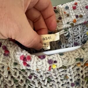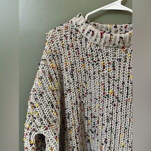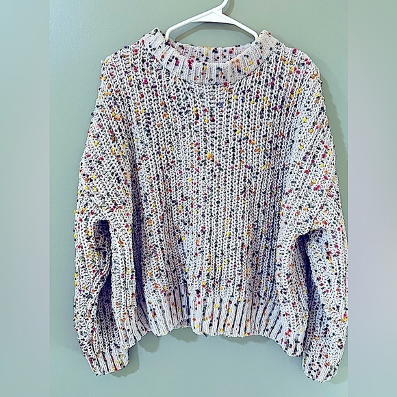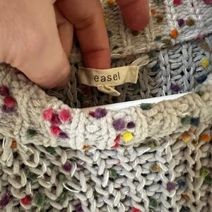 Easel Confetti Pom Pom Crew Neck Knit Cream Sweater Multicolor Size Small S