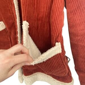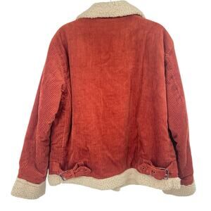 Easel Corduroy Trucker Chore Jacket Sherpa Size Large Rust Orange Red