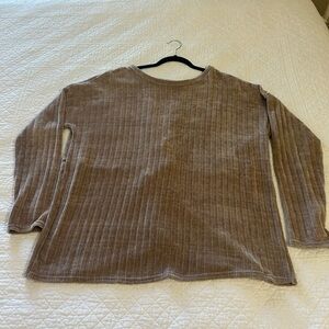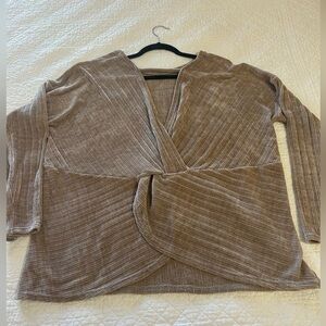 Easel Cream Velour Long Sleeve Top w/ Criss Cross Back. Size Medium.