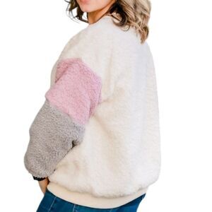Easel Cuddle Me Time Ivory Pink Gray Sweater Sherpa Fleece Oversized Chunky S