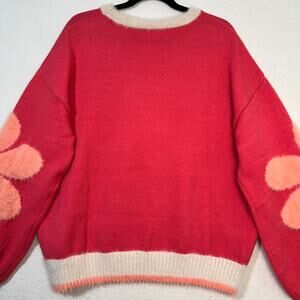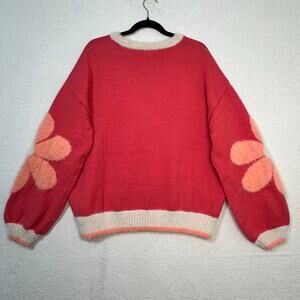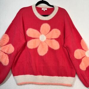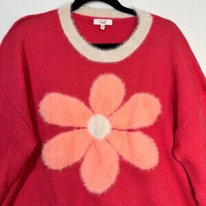Easel Dreaming of Daisy Fuzzy Knit Floral Crewneck Superr Soft Sweater Medium