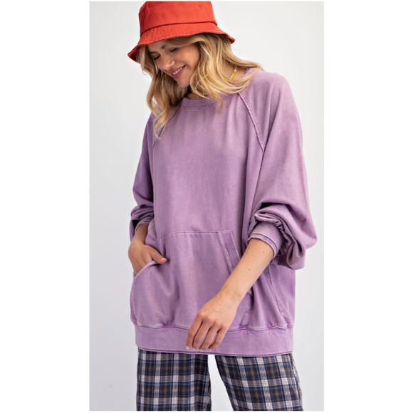 Easel Dusty Lavender Cotton Loose Fit Mineral Wash Pullover Sweater
