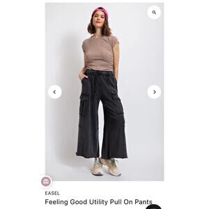 Easel Feeling Good Mineral Washed Wide Legs Terry Knit Cargo Pants women Sz Medium