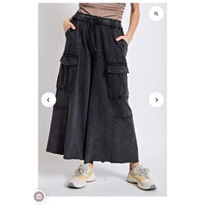 Easel Feeling Good Mineral Washed Wide Legs Terry Knit Cargo Pants women Sz M
