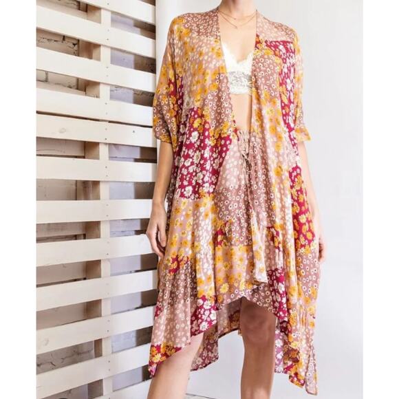 Easel Floral Boho Summer Hippie Flyaway Kimono Cardigan Size Small