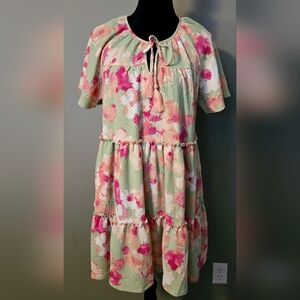 Easel Floral Knit Popcorn Tiered Dress #496-501