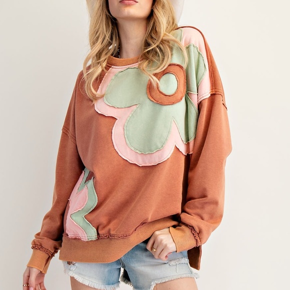 FLOWER PATCH MINERAL WASHED TERRY KNIT PULLOVER