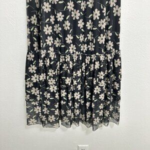 Easel Floral Tiered Ruffle Midi Skirt Chiffon Size L Lined Black Gray Boho Fairy