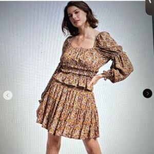This charming mini skirt by Easel features a playful skater style with a smocked waistband and delightful ruffled layers. The gold and black multicolored floral hues make it perfect for casual outings or resort wear, offering a versatile and stylish addition to your wardrobe.