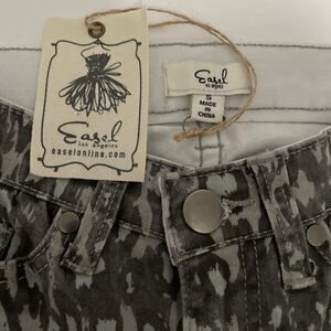 Easel Gray Camo Animal Print Jeans Cropped Size Small Frayed Hem New NWT