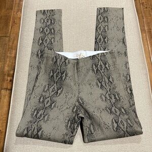 Super cute khaki snakeskin print leggings. Pull on style. Stretchy, denim-style fabric.