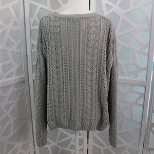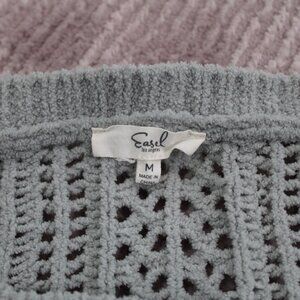 Elevate your wardrobe with the Easel Sweater, a perfect blend of comfort and style. This women's medium-sized, oversized pullover is crafted from a soft polyester material with a cozy knit fabric. It features a chic gray color, complemented by a classic round neckline and convenient raglan sleeves, making it an ideal choice for various occasions, from casual outings to business meetings or even cocktail parties. Attention to detail is evident with the sweater's subtle crochet accents and open-knit pattern, which not only enhances its aesthetic appeal but also ensures breathability. With the versatility to span fall, spring, and winter seasons and the ease of hand wash care, this garment is a staple for any city dweller or college student looking to add a touch of preppy bohemianism to their ensemble.