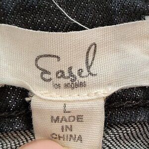 Easel Los Angeles Black distressed Skinny Ankle Jeans Pearl Embellishment Large Has some stretch Raw Hem