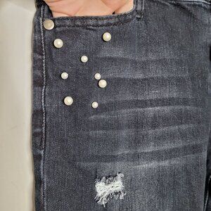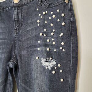 Easel Los Angeles Black distressed Skinny Ankle Jeans Pearl Embellishment Large