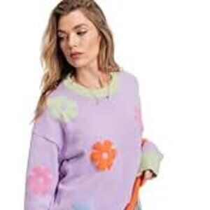 Embrace vibrant style with this colorful floral sweater. Perfect for adding a pop of color to your wardrobe.