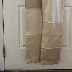 Easel Los Angeles Farmhouse Country Hippie Festival Tan Denim Patchwork Overalls Sz SM