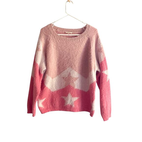Easel Los Angeles Fuzzy Pink Star Sweater Women’s Size M Cozy Knit Pullover