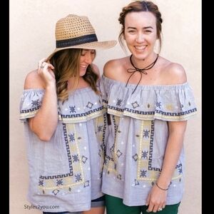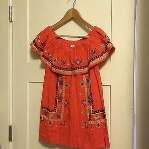 New with tags Easel Los Angeles Kylee embroidered top. It can be worn on or off the shoulders. Stock photos are for fit reference. The top is a red/orange color and made of 100% cotton.