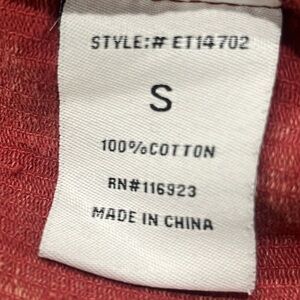 Stylish RUSTY red top by Easel Los Angeles. Perfect for any occasion. LONG SLEEVES, BUTTON UP FRONT, TWO CHEST AND TWO LOWER FRONT POCKETS, RAW HEM AND CUFFS, 100% COTTON RUSTY RED, WESTERN, COWGIRL, BARN JACKET, PRE OWNED IN EXCELLENT CONDITION.