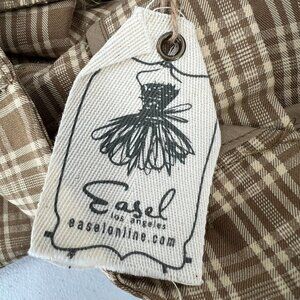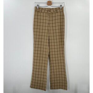 Easel Los Angeles Small Brown Plaid Wide Leg Trousers High Rise Check Pants