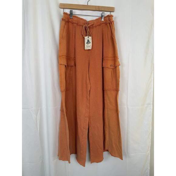 Easel Los Angeles Women's Cargo Wide Leg Pants Orange Size M Lounge