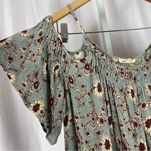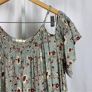 Easel Medium Boho Sunflower Floral Cold Shoulder Tassel Pleat Flowy Dress Loose