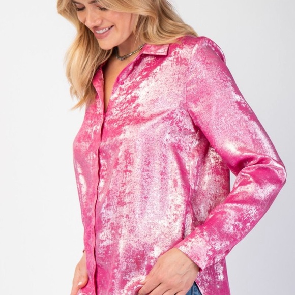 Easel Metallic Pink Button-Down Shirt