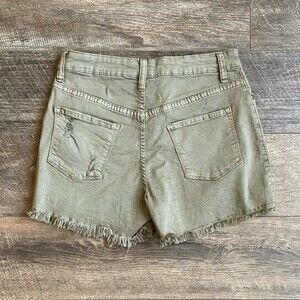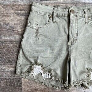 Easel Mid-Rise Lace Appliqué Detailed Distressed Shorts Olive Green Small
