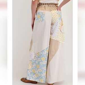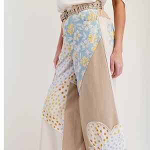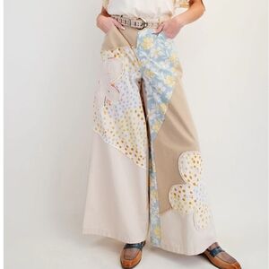 Easel Mix Match Flower Patched Woven Pants Beige NEW