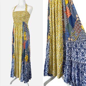 Easel Mixed Print Halter Maxi Dress Sz M Floral Patchwork Boho Hippie Festival