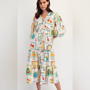 Easel Multicolor fruit pattern Long Sleeve Dress size 2x