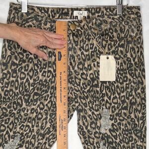 Easel NEW pants size L 32 cheetah print beige/black distressed mob wife artsy