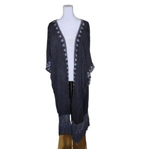 Easel Open Front Duster Long Coverup Womens Size M Gray Fringe
