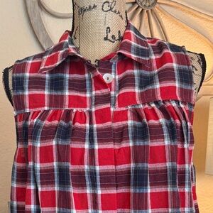 📌Sleeveless Red and Black Checkered Top with Raw Hem