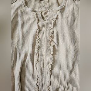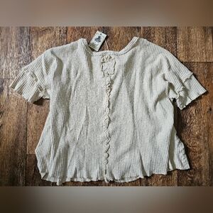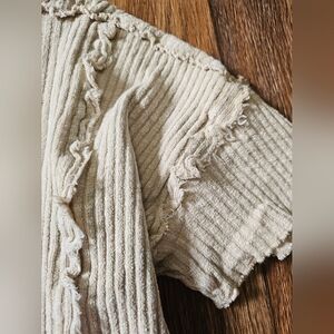 Keywords: Easel top, Easel clothing, oversized top, oversized small, ribbed knit, ribbed top, ruffle top, raw hem, raw edge, neutral top, beige top, cream top, boho top, boho chic, boutique top, comfy top, slouchy fit, casual top, loungewear top, trendy top, fall top, spring top, women’s small, NWT, new with tags, boutique brand