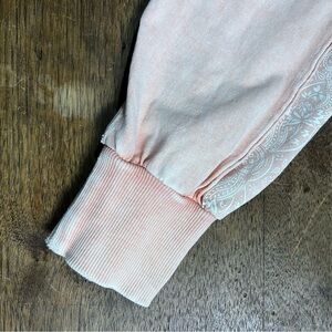 Easel | Peach Floral Patchwork Exposed Seam Oversized Long Sleeve Top, Medium