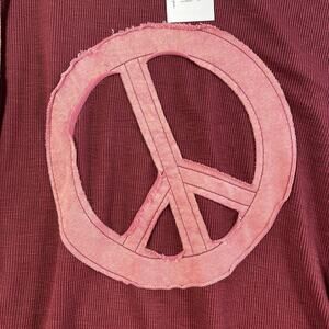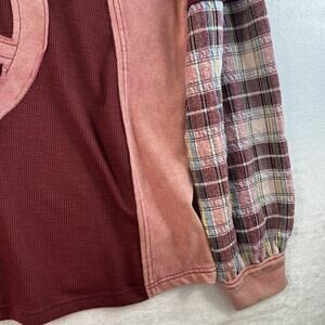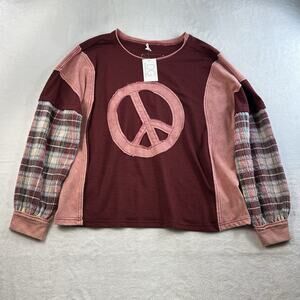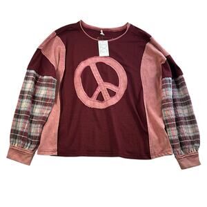 Easel Plus 2X Top Peace Patch Mineral Washed Plaid Patterned Sleeve Boho NEW
