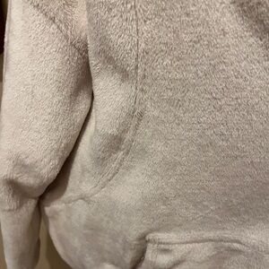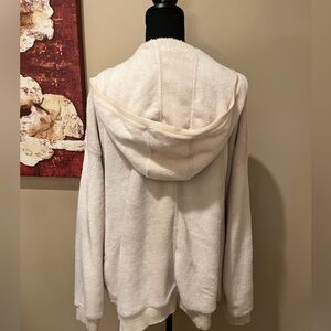 Easel Plush Fleece Oversized Ecru V Neck Hoodie, size M