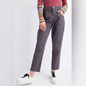 Easel Polka Dot Garment Dyed High Waisted Straight Leg Pants New Small Ash Black