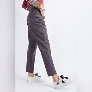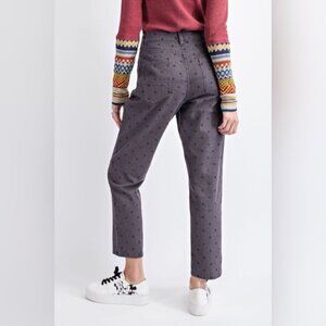 The tonal polka dot print adds a fun, unique rockabilly vibe to this pair of pants. Add an airy blouse and Mary Janes to complete the look!