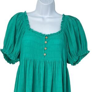 Easel Puff Sleeve Tiered Mini Babydoll Dress Atlantis Green Small Flowy Romantic Boho NWT Cottage Girly Whimsical