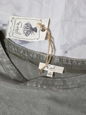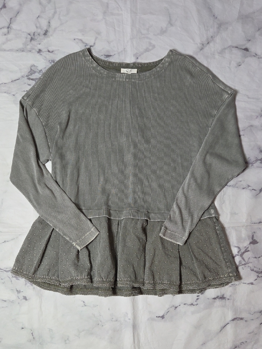Easel Ribbed Ruffle Bottom Tunic Top