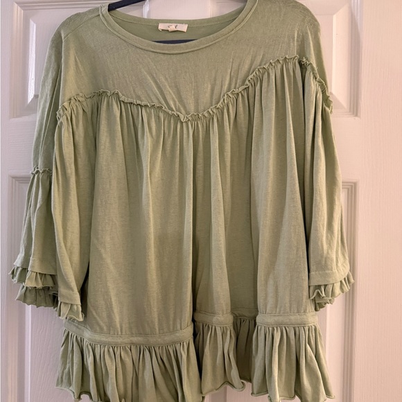 Elegant green top with ruffled details, perfect for any occasion. NWOT - never worn or washed