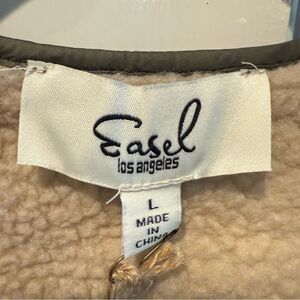 NWT! Easel Scribbly Stars Reversible Puffer Jacket. Side 1 is a quilted green background with gold stars and deep pockets. Side 2 is a light sherpa with a dog and flower design. Excellent new condition. Smoke free, dog friendly home.