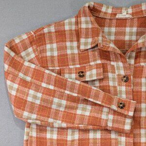 Easel Shacket Womens S Orange Plaid Lumberjack 90s Grunge Streetwear Fall Wool