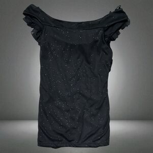 Easel Shirt M Off Shoulder Ruffle Ruched Black Sparkle Goth Babydoll Coquette