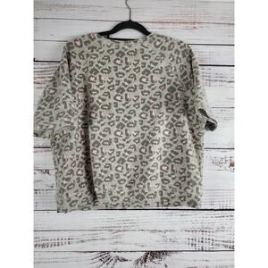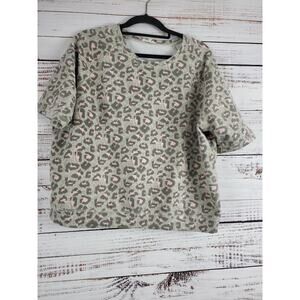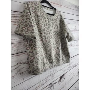 Easel Short Sleeve Sweatshirt L Womens Grey Pink Animal Print Crew Neck Pullover